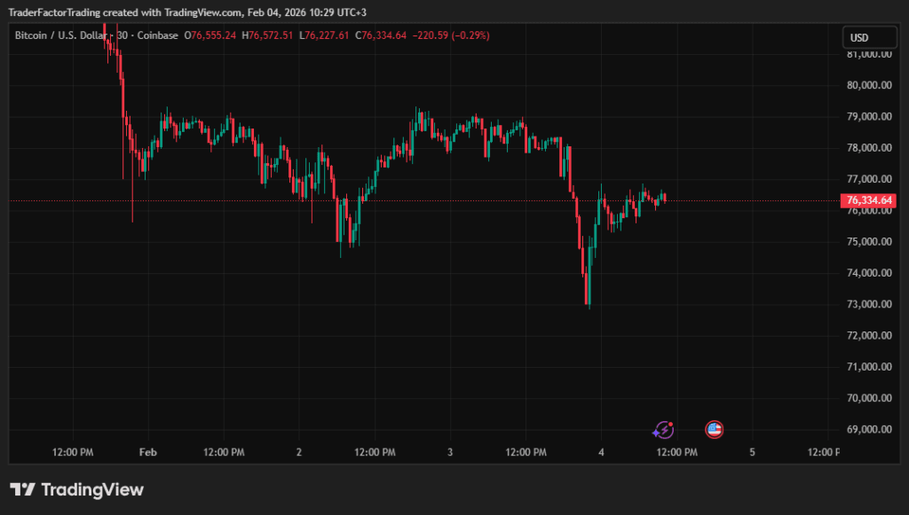 Bitcoin dropped below the $73,000 level late yesterday, its lowest point since the start of the month. The cryptocurrency lost over 9% in value in just five days, underscoring how quickly the market can pivot. After intense selling, the price rebounded fast. The jump back above $76,000 reflects typical crypto behavior, where steep drops often see buyers step in and push values up again. Volatility remains a hallmark of digital assets, with price swings that can unfold within hours.