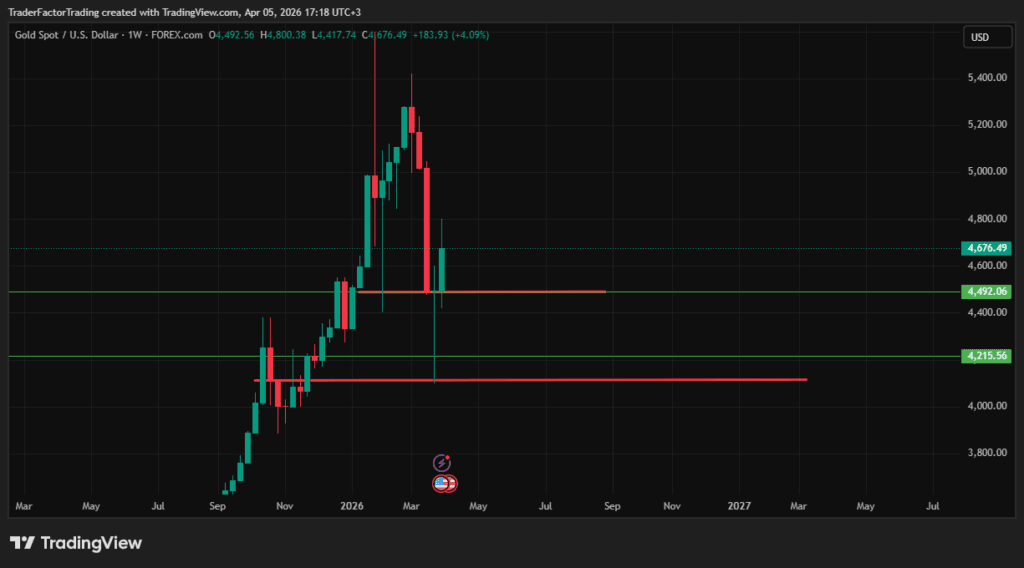 On the higher timeframe, gold is coming off a major distribution phase, with March recording one of the steepest declines in recent years. Price is now trading: